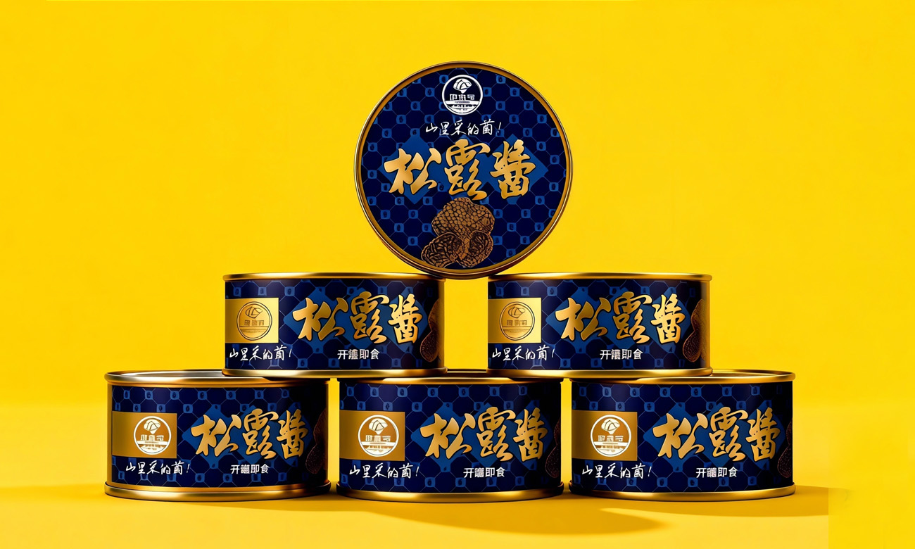松露酱以深蓝 + 松露纹理,强化珍稀高端的品类认知;
