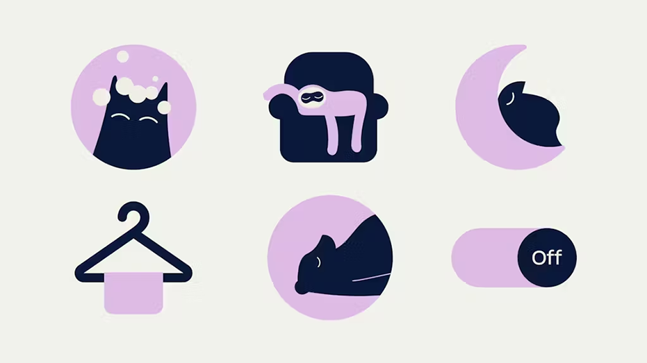 调色板以紫色为主,紫色在许多不同的文化中都有睡眠和平静的含义,字体的选择都是为了将易读性和悠闲的个性相结合——标识采用 Redonda 的修改版本,Degular 用作标题,正文。