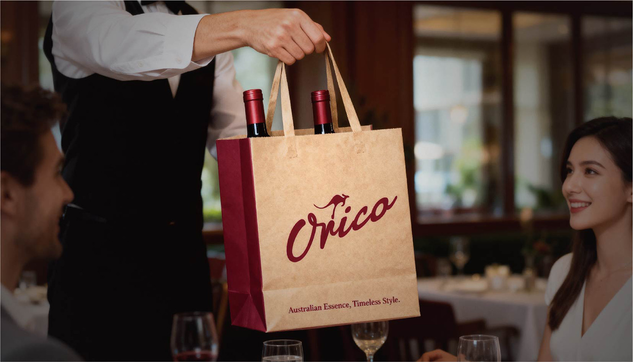 因其原产地是澳洲,客户要求体现澳洲元素并结合红酒的品质感,以区别于国内的红酒品牌。于是超级符号——澳洲袋鼠便诞生了,但是如何让“袋鼠”形象跟其它的区别开来?用手写连笔字与“袋鼠”融合成一个整体,是一种不错的解决方法,手写的连笔字体中融合了酒杯,酒滴等元素,转好地传达了生动、活力、流畅、自然……