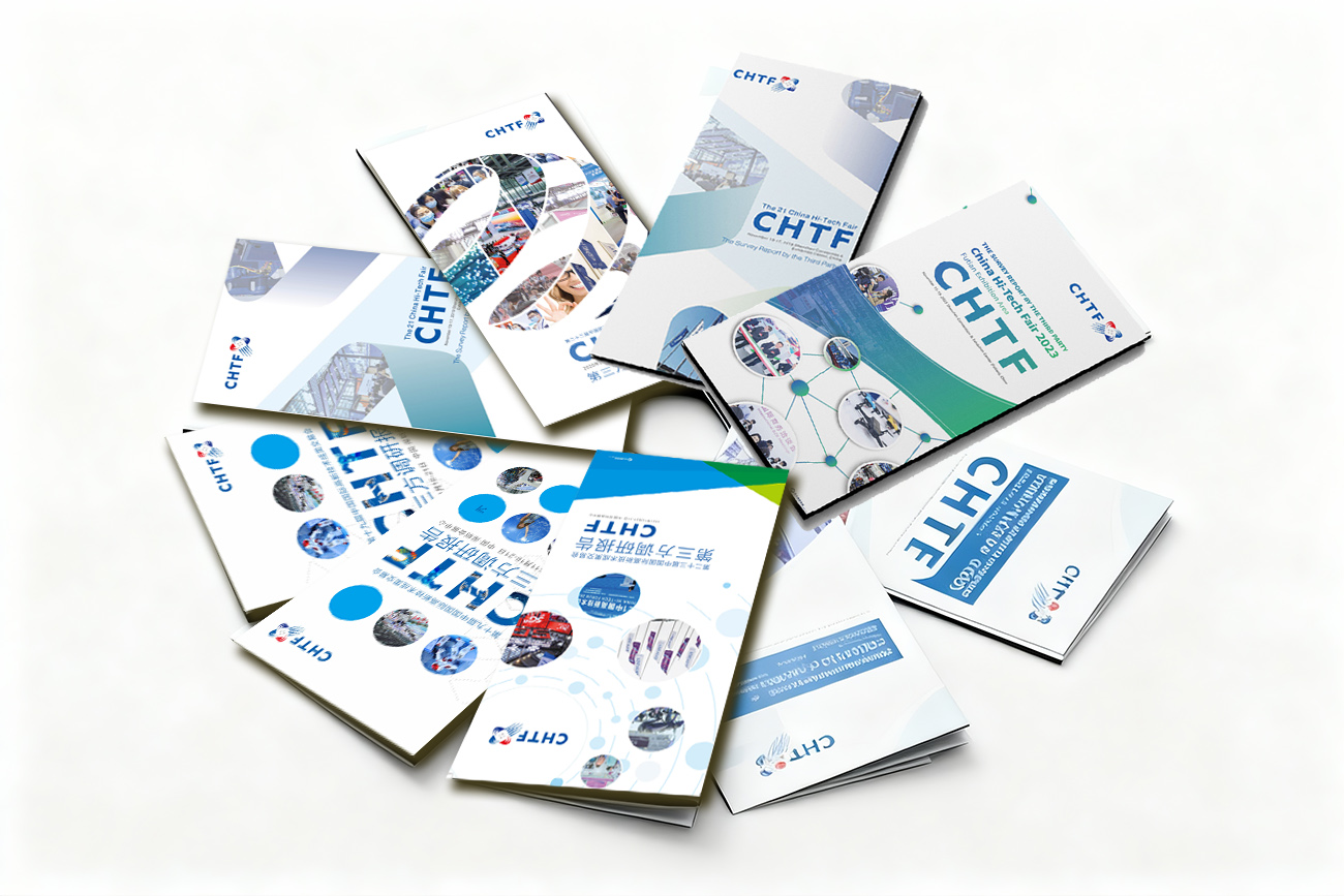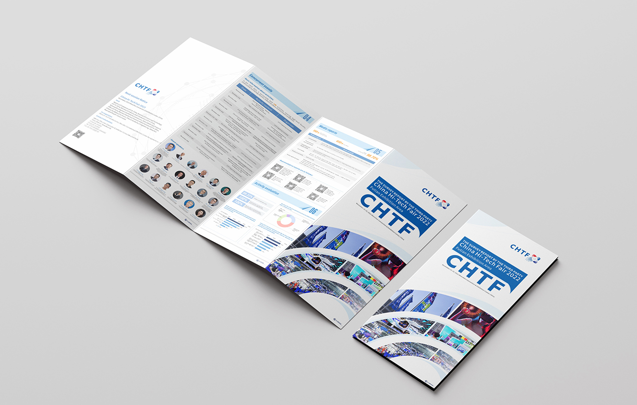 - 我们约连续八年服务了高交会的简介折页设计,我们保持统一的风格的同时,每年都要在统一中求变化和设计细节的突破,我们非常乐意进行这样的挑战,因为往往要做一个主风格延展好几个版式,如中英文、英文双语版及横版和竖版,但规格是基本没变。