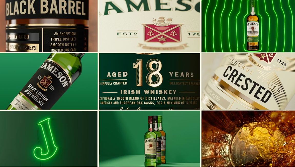 “重新设计像Jameson这样的品牌意味着要走在一条细微的界线上,”Ridley说。“这不是重新开始;关键是理解什么已经能打动观众,挖掘更多那个角